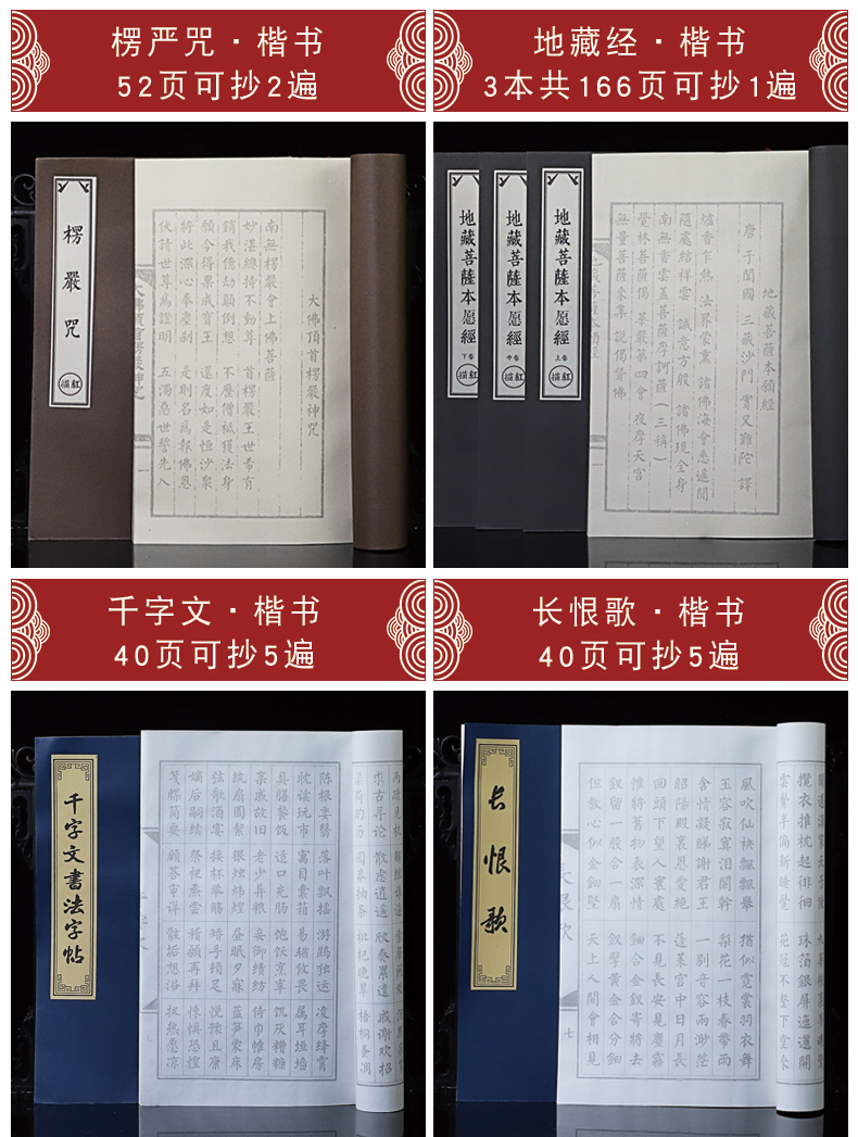 小楷の筆の書帖は入門して金剛をまねます。道徳を経て大悲呪経経経経経経経経経経心経抄経本の初心者習字セットの宣布紙を経て、紅の手を引いて復古の線装書の金剛経(楷書)の単冊を写します。【2冊買ったら模写紙を送ります。】