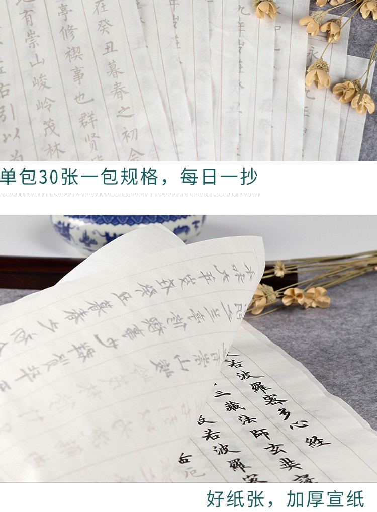 続芸斎毛筆書帖小楷心経抄経経手写本練習書道宣紙入門四宝【霊飛経】30枚の一包み