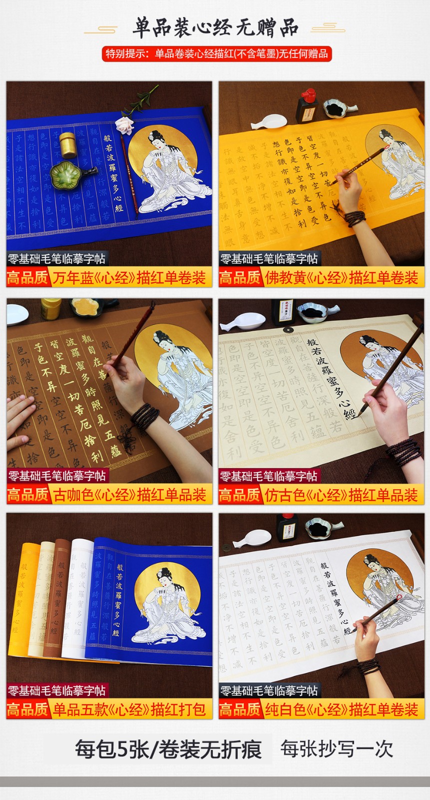 徽姫の文房四宝心経経経経の手で心経の宣紙を写して、セットで経を写す経心経写経の楷書を写して、セットの楷書の毛筆の書帖を写して、仏教黄(筆と墨を含まない)の単品を心経します。