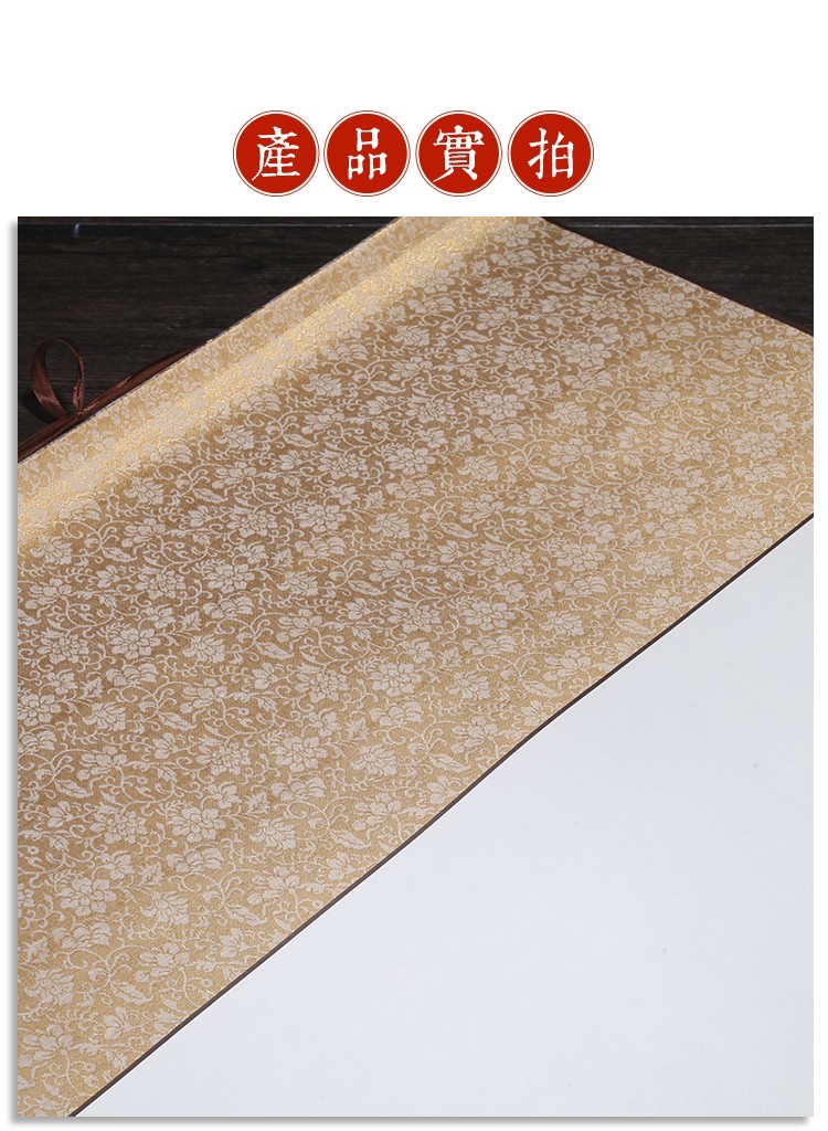 鳳泉宣紙書道専用紙古紙模造紙半熟画軸白紙書画表装生宣紙国画専用巻物白紙書道作品紙四尺横断幕掛け軸【横軸】全体55 x 112 cm(芯45 x 65 cm)手作り白檀皮宣古色生宣画芯【写真価格ブランド新聞】